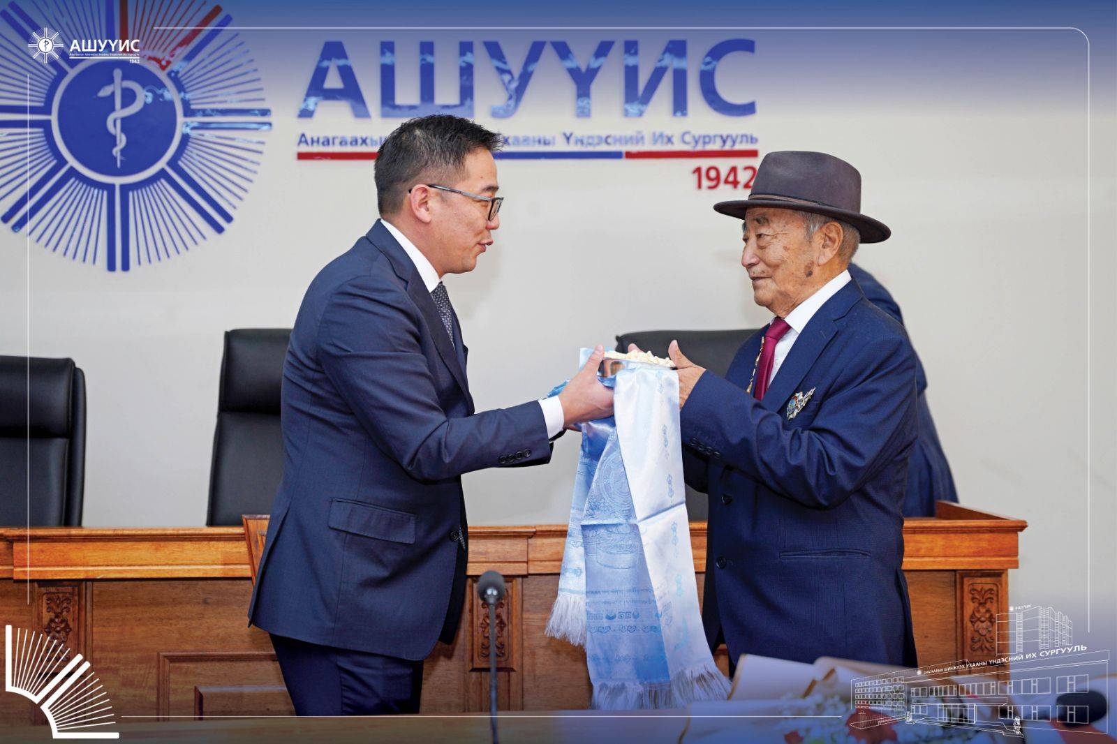 АШУҮИС-ИЙН ХҮНДЭТ ДОКТОР, ПРОФЕССОР Т.БАТСҮХ МОНГОЛ УЛСЫН “АРДЫН БАГШ” ЦОЛООР ШАГНАГДСАНД БАЯР ХҮРГЭЖ, СУРГАН ХҮМҮҮЖҮҮЛЭХ ИХ ҮЙЛСЭД ТАНЬ УЛАМ ИХ АМЖИЛТ ХҮСЬЕ!